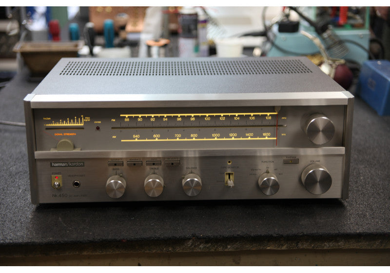 Le Harman Kardon HK-450 délivre une puissance de 30 watts par canal, pour un taux de distorsion harmonique inférieur à 0,1%. Il est équipé d'une entrée phono, d'une entrée tuner et de deux entrées/sorties tape (dont une entrée au format DIN). L'égalisation se compose de réglages basiques : graves, aigus, loudness.