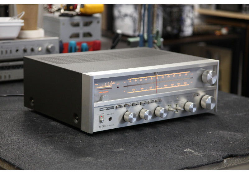 Tout comme son petit frère le HK-450 DC, le Harman Kardon HK-560 est sorti en 1979. Cet ampli-tuner à l'esthétique affirmée (une constante chez HK) délivre une puissance de 40 watts par canal pour un taux de distorsion de 0,04%.