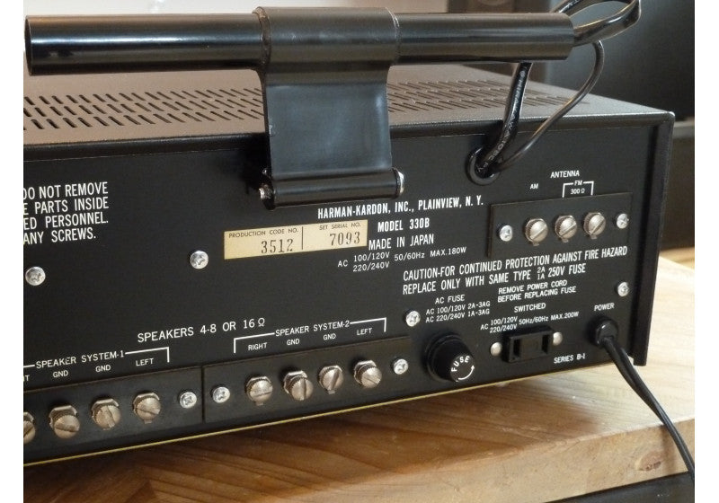 Le Harman/Kardon 330B est par ailleurs complet, sa partie tuner est d’une très bonne sensibilité, il dispose d'une entrée Phono, 1 Aux, 1 tape, la possibilité de séparer l'ampli du pré-ampli et de câbler 2 paires d'enceintes.
